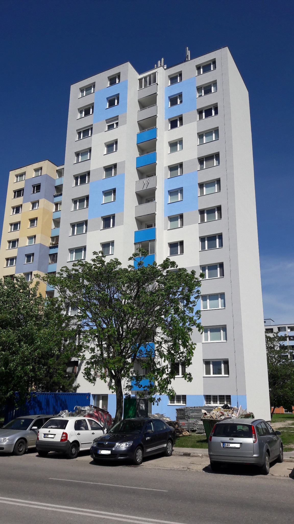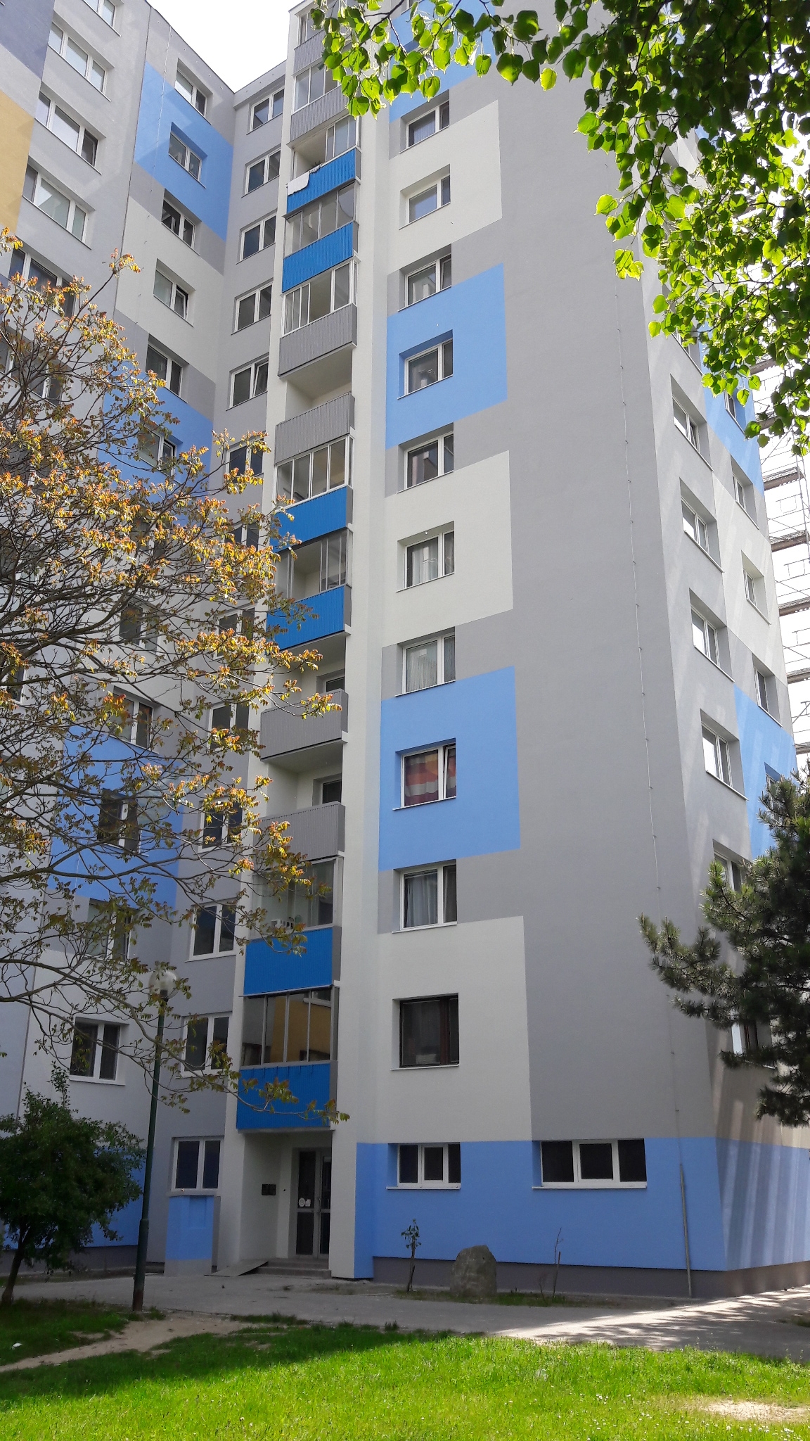 | Rozsah prác | Zateplenie obvodového plášťa, zateplenie stropov pivničných priestorov, sanácia lodžií, výmena vnútorných rozvodov ZTI a výmena výťahov |