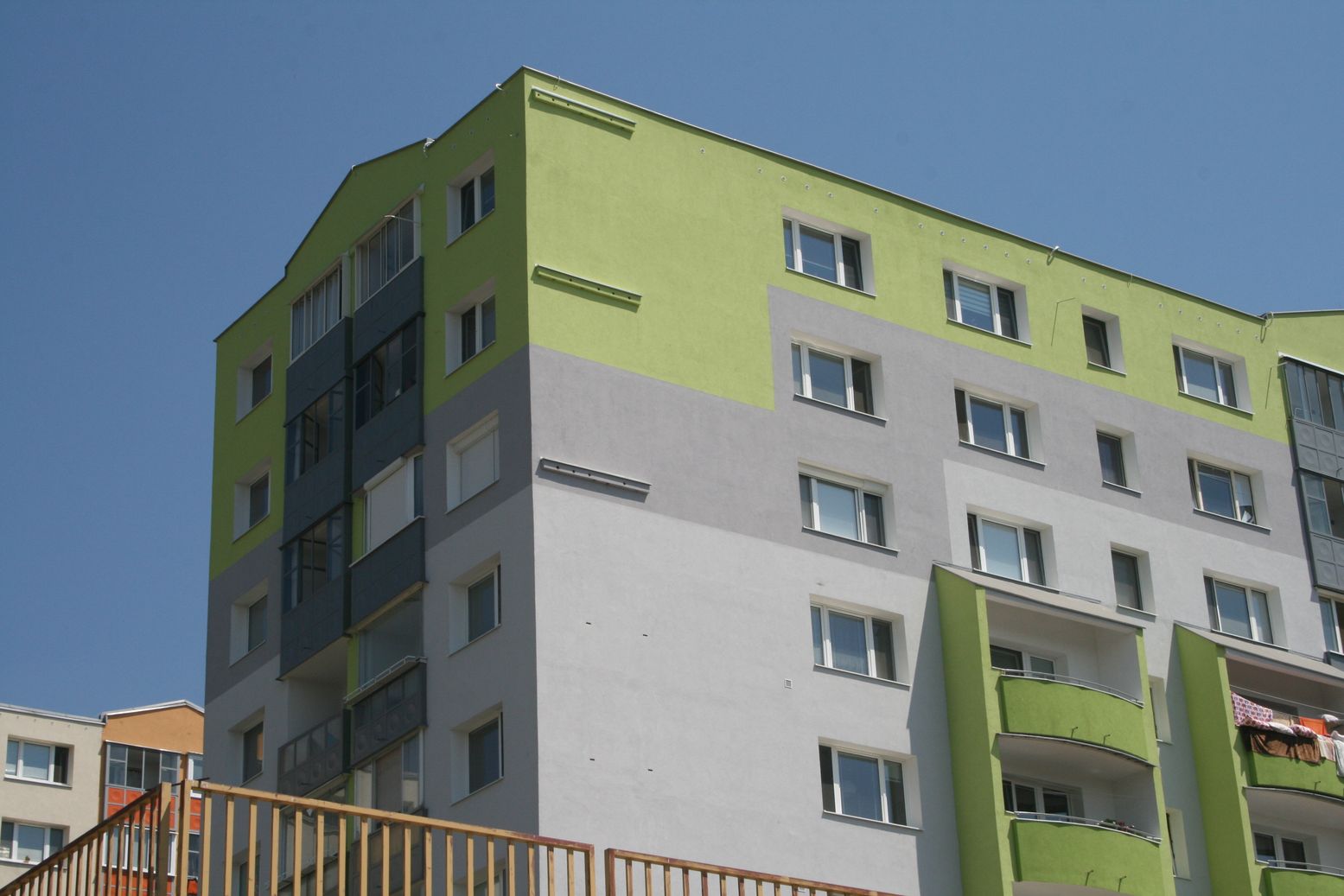 | Rozsah prác | Zateplenie obvodového plášťa, zateplenie strešného plášťa, zateplenie stropov pivničných priestorov, sanácia lodžií, výmena vnútorných rozvodov ZTI a výmena výťahov |
